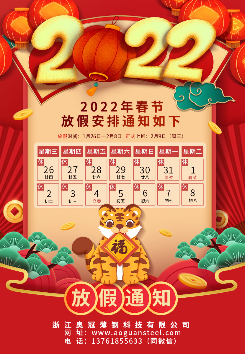 根據國家放假時間為:1月26--2月8號。不便之處敬請諒解!若有緊急問題 請撥:13761855633,歡迎來電咨詢!